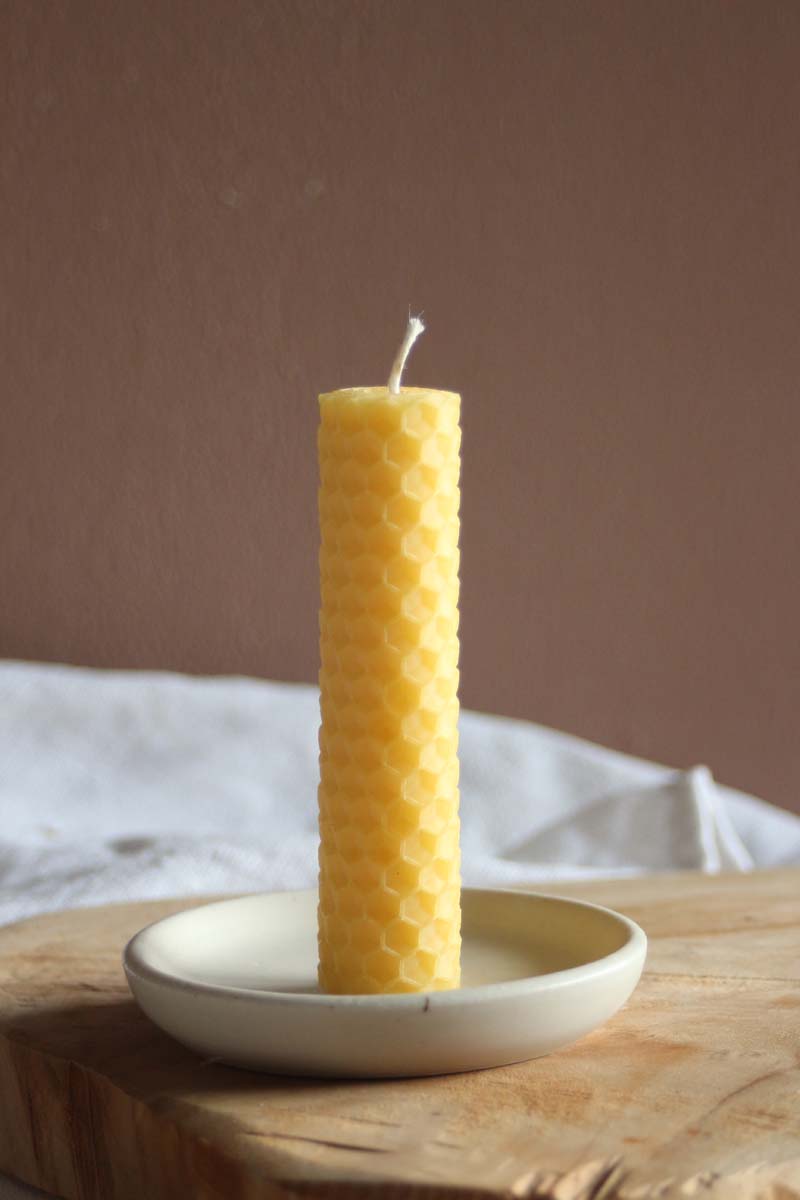 La Capucine en version mini. Bougie en cire d’abeille gaufrée qui diffuse une douce odeur de ruche dans votre maison.